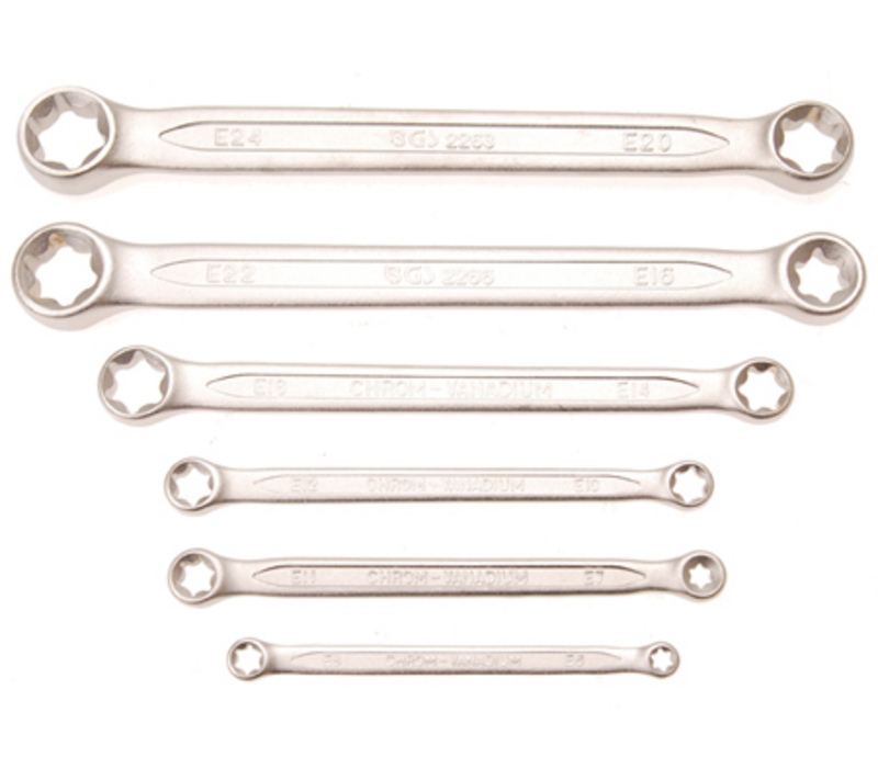 Set dvostrukih okastih ključeva sa prstenastom glavom E-profila | E6 x E8 - E20 x E24 | 6 kom.