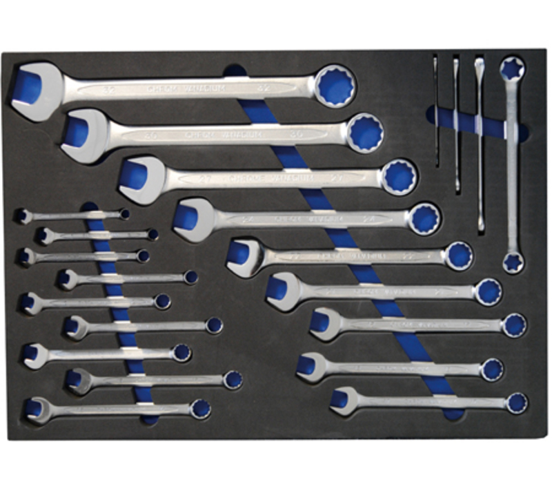 Uložak za radionička kolica 3/3: viljuškasto-okasti i ključ E-profila | 22 kom. (B4012)
