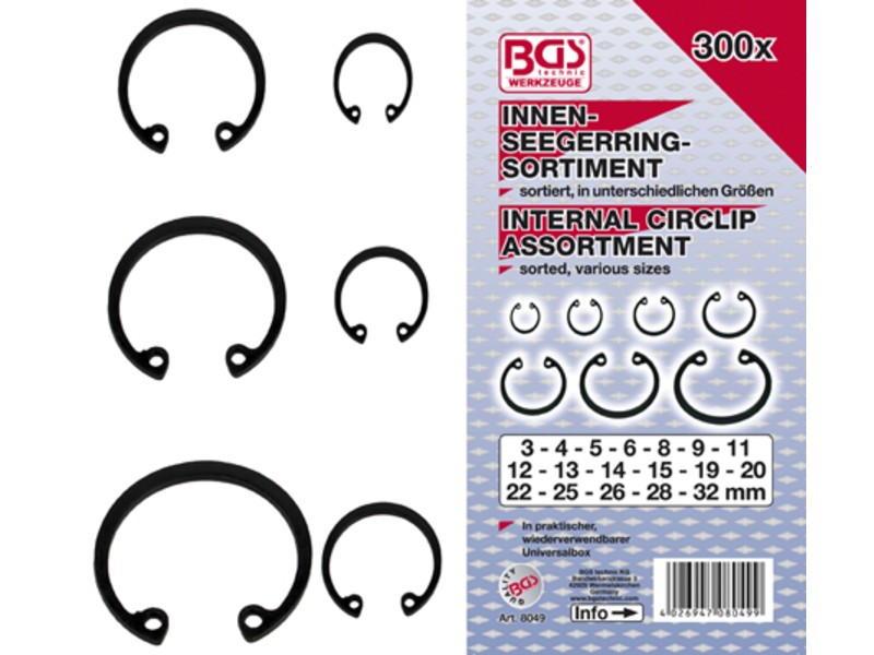 Asortiman unutrašnjih sigurnosnih prstena (uskočnika) | Ø 3 - 32 mm | 300 kom. (B8049)