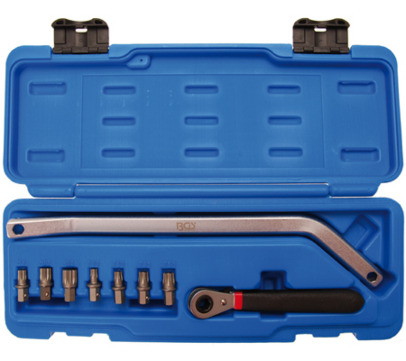 sadrži sledeće bitove sa pričvrsnom kuglom za vijke sa unutrašnjim ozubljenjem M8, M10 i M12, kao i vijke T-profila T30, T40, T45 i T50