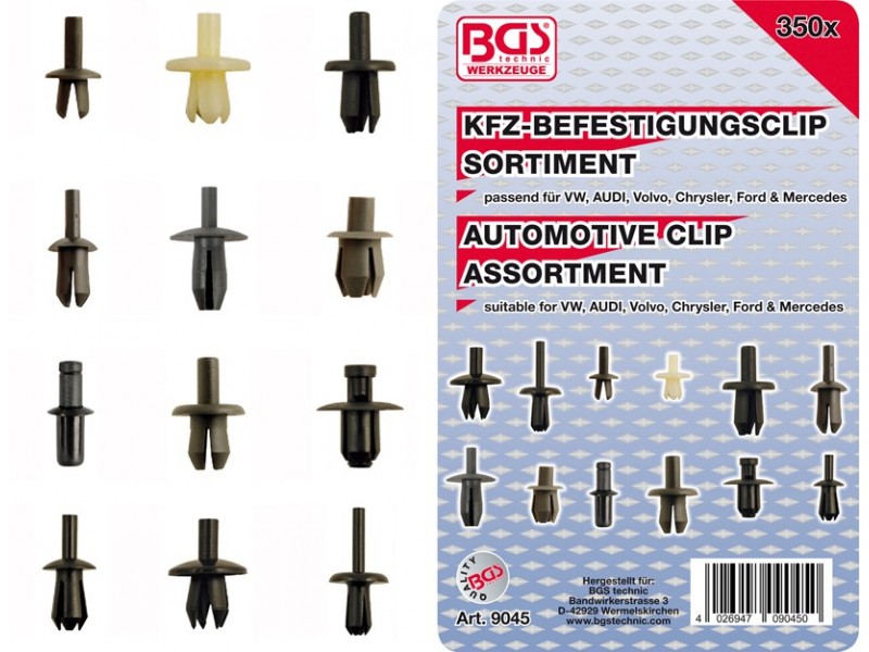Asortiman pričvrsnih spojnica za vozila VW, Audi, Volvo, Chrysler, Ford, Mercedes-Benz | 350 kom.