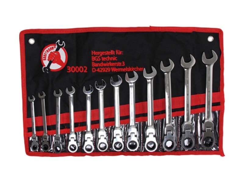 Set zapornih okasto-viljuškastih ključeva | fleksibilna glava | 8 - 19 mm | 12 kom.