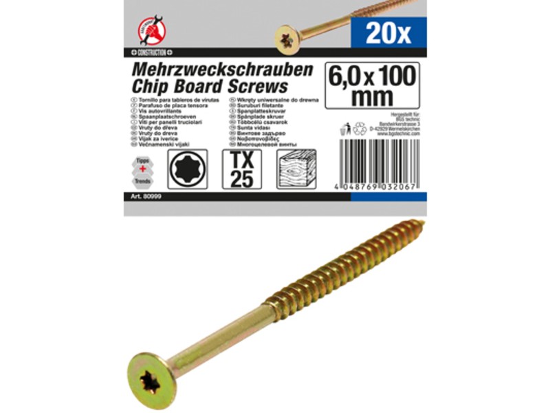 Višenamenski vijci | T-profil (za Torx) T25 | 6,0 x 100 mm | 20 kom. (B80999)