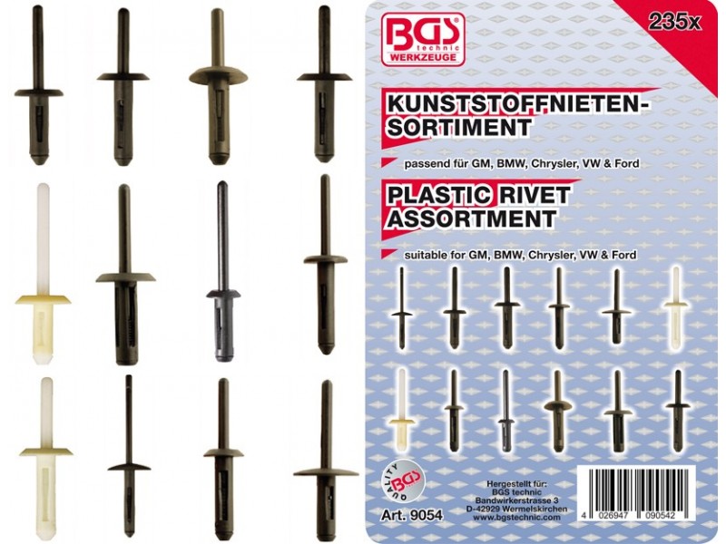 Asortiman plastičnih zakovica | za GM, BMW, Chrysler, VW, Ford | 235 kom.