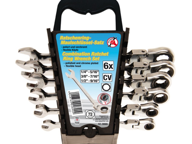 Set zapornih okasto-viljuškastih ključeva | fleksibilna glava | veličina u colima | 1/4" - 9/16" | 6 kom. (B30005)