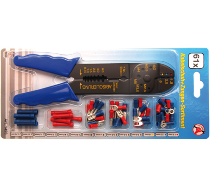 Klešta za krimpovanje sa asortimanom kablovskih papučica | 200 mm | 61 kom. (B1423)