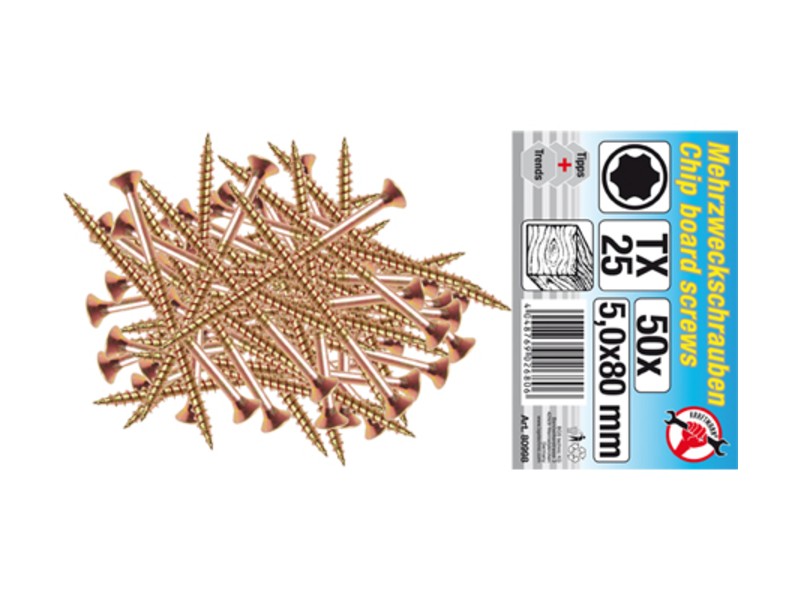 Višenamenski vijci | T-profil (za Torx) T25 | 5,0 x 80 mm | 50 kom.
