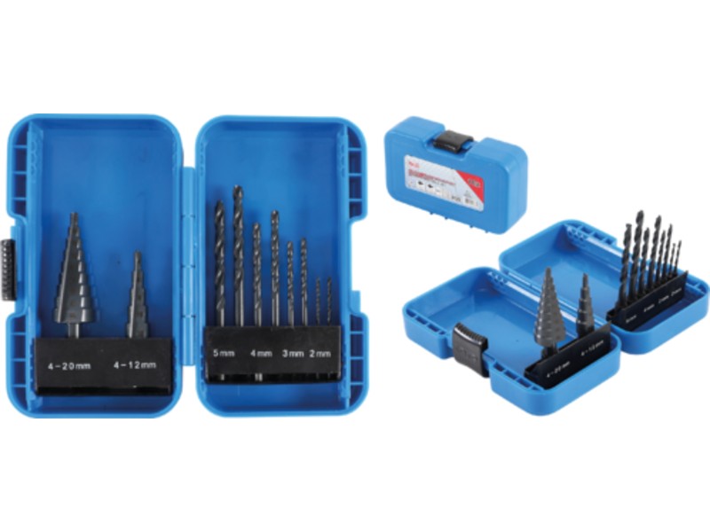 Set spiralnih i postupnih svrdla | HSS | 4 - 12 / 4 - 20 mm | 2 - 5 mm | 10 kom.